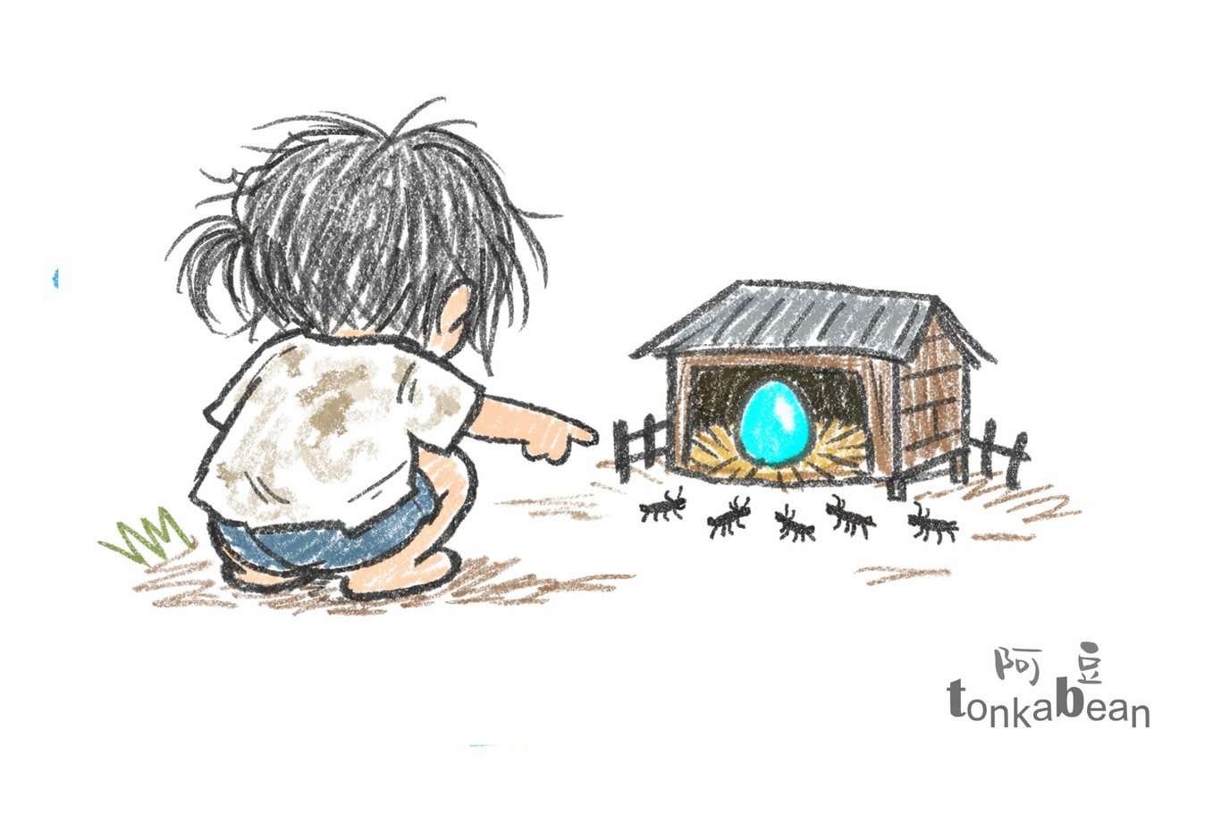 我順著她追問蛋的去向,她歪著頭想了想:"讓螞蟻搬走了。"